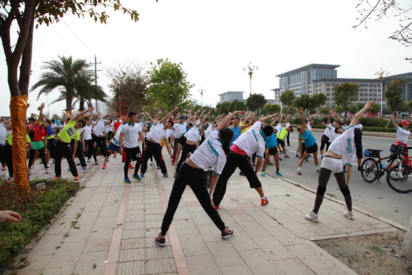 活動現場,來自大泉州各個地區,甚至全國各地的小伙伴紛至沓來,不難發現有很多團體參加,他們穿著統一的獨具匠心的統一白色T恤,熱情洋溢,充滿年輕活力,這也是活動的一道風景線;現場各位小伙伴處處洋溢著笑臉與矯健的身手,無不彰顯著都市人對健康生活追求,和對環灣山海環境的喜愛。